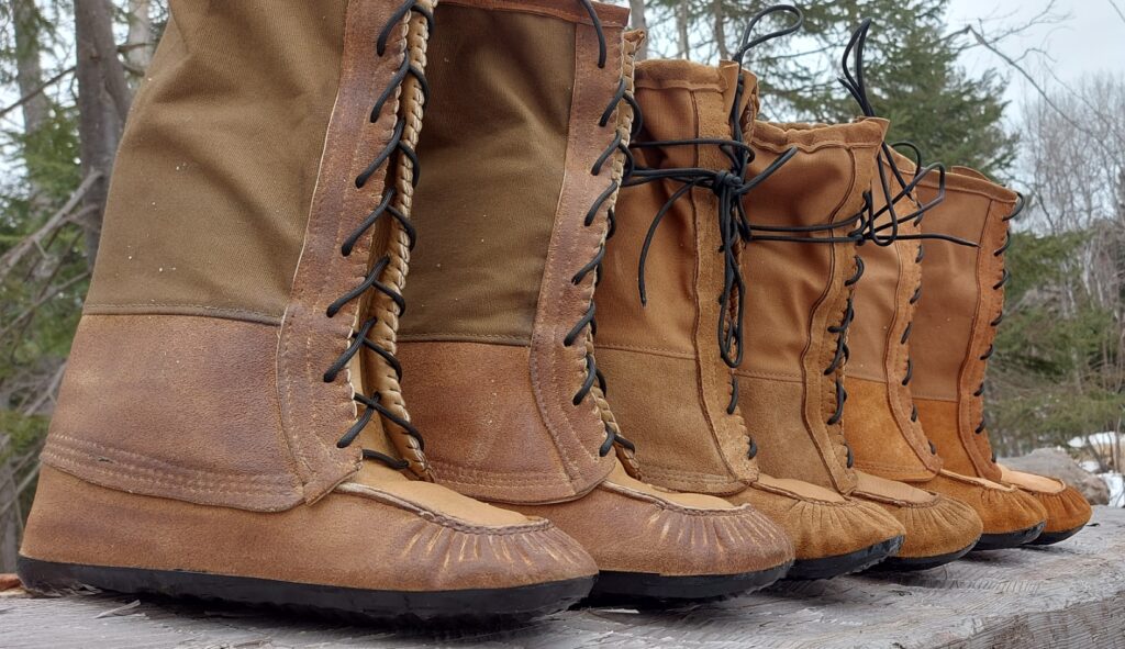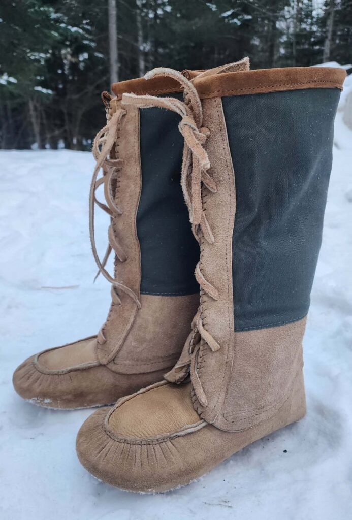 Inspiré par les mocassins Innu ce modèle adopté par les canadiens français est aussi appelé botte du pays.